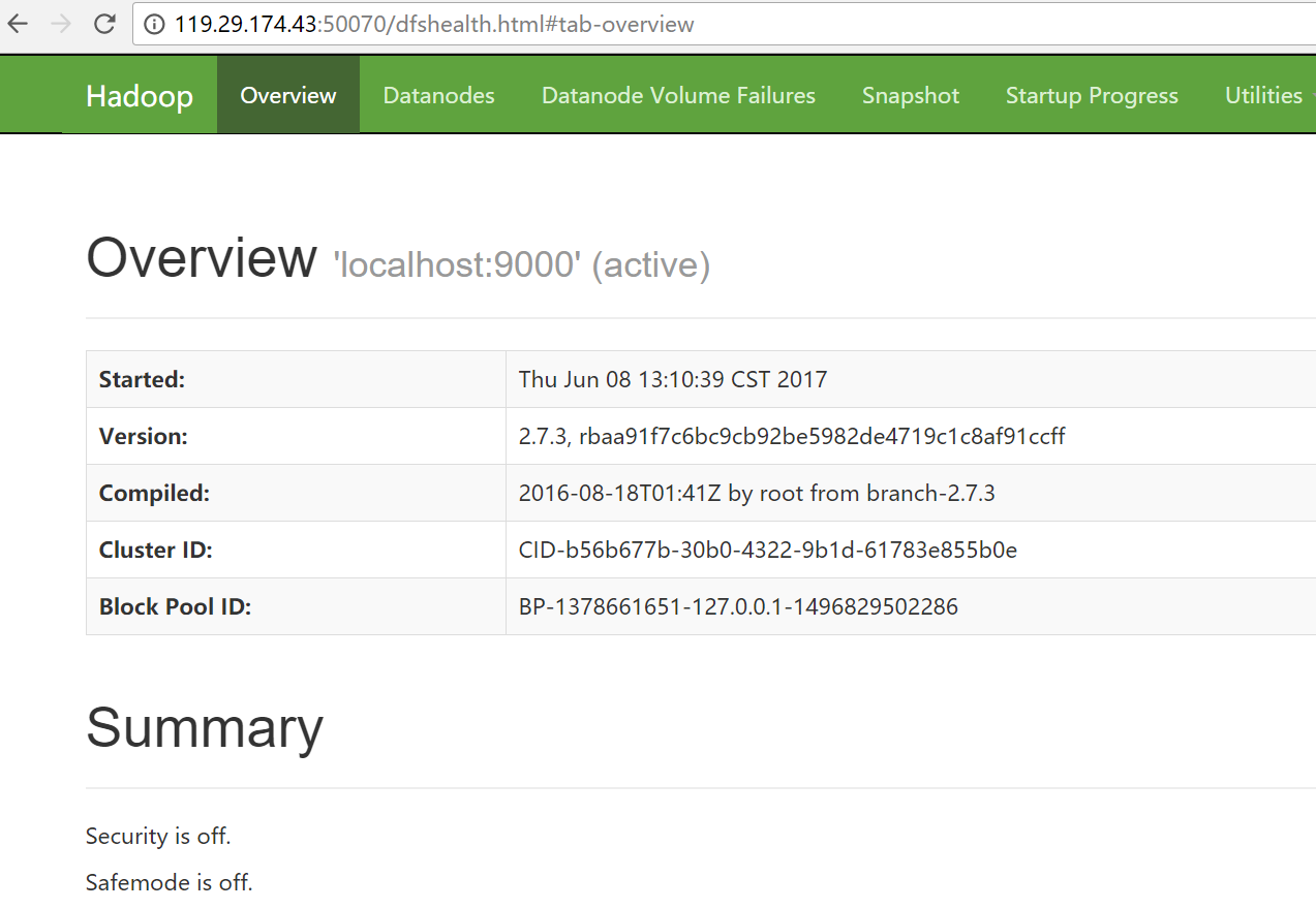 瀏覽器輸入:http://119.29.174.43:50070 查看效果: