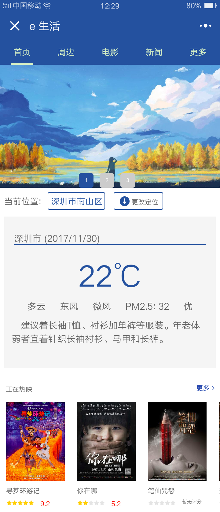 (2)首頁:輪播頭圖,天氣,豆瓣電影正在熱映