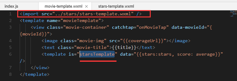 star-template.wxml頁面寫好name屬性;然后import引入的時候通過name獲得即可